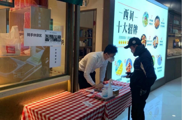 :首先,要求全员戴口罩、测体温。如果骑手没口罩会主动赠送。其次,外卖菜品在专区加盖和打包,菜品包装使用封签。第三,重视消毒。打包员和骑手的手部反复消毒,骑手等候区专门消毒。此外,西贝还会在外卖上附上打包卡,将厨师、打包员和骑手的姓名、体温标明。做到安全可追溯。